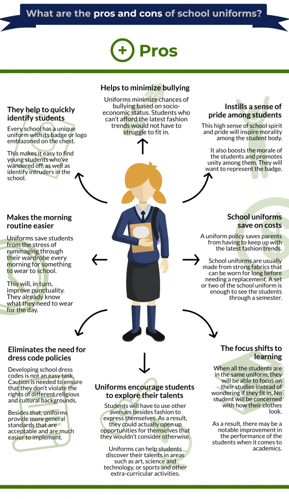 School uniforms depict the picture of the school. It gives each understudy a feeling of having a place and pride in their looks. At whatever point they go outside the school, they remember that they are the ministers of their schools and carry on as the respectability of the school manages.